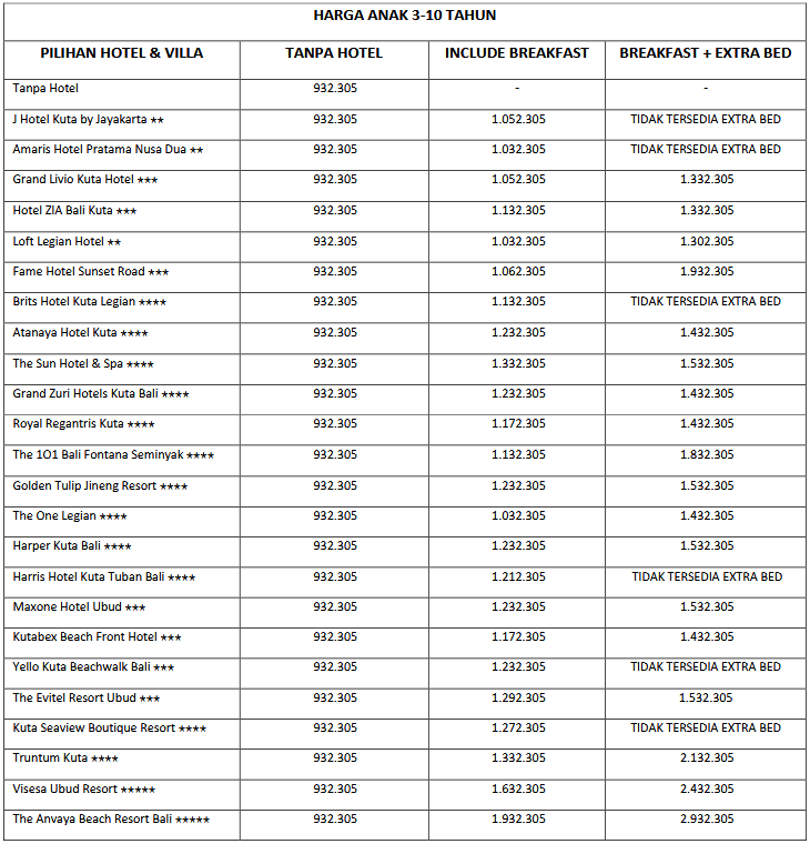 HARGA PER ANAK 3-10 TAHUN
