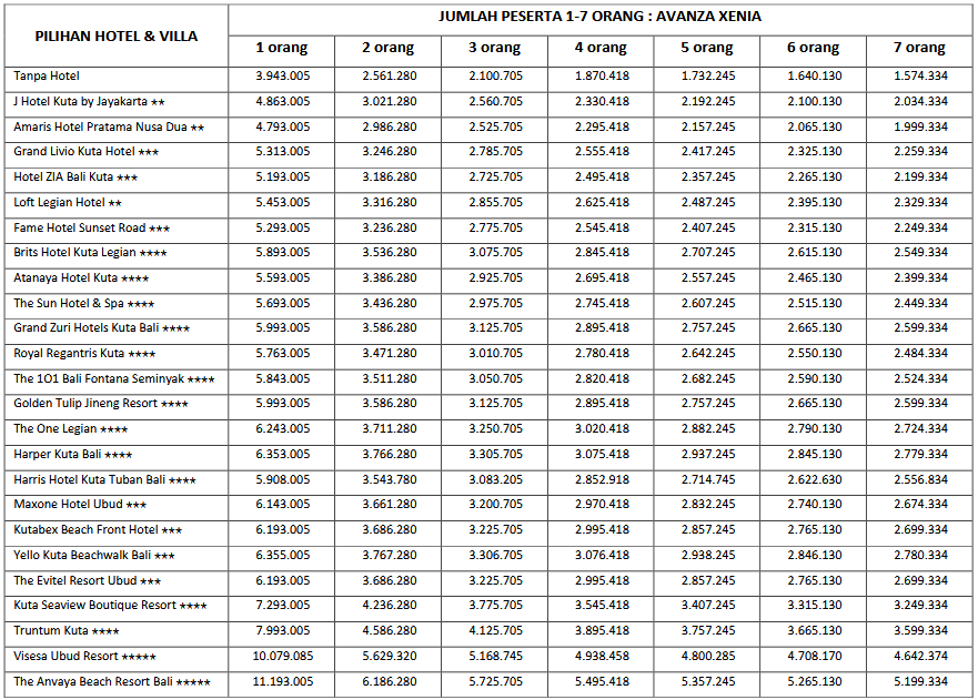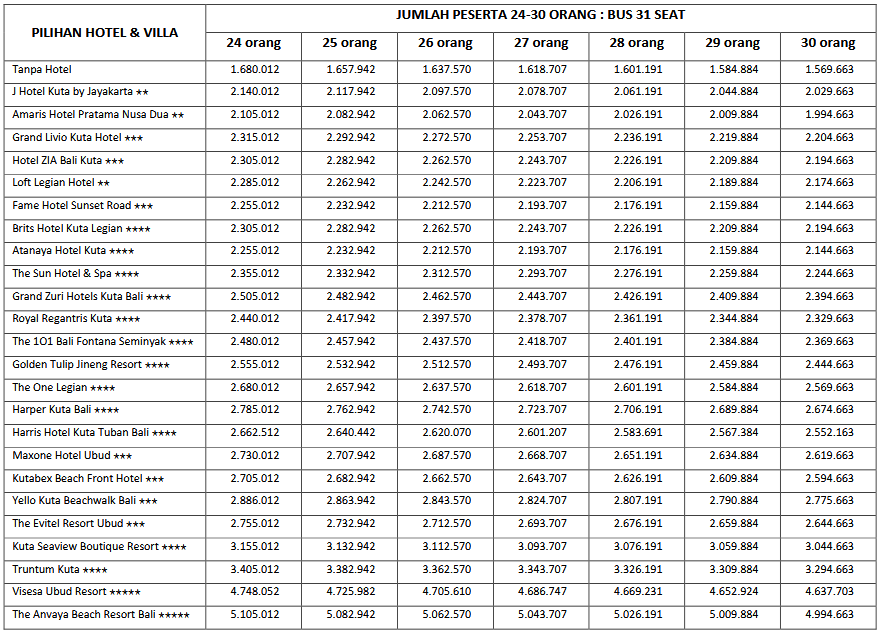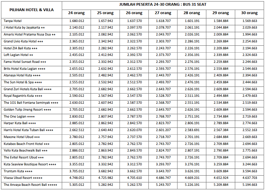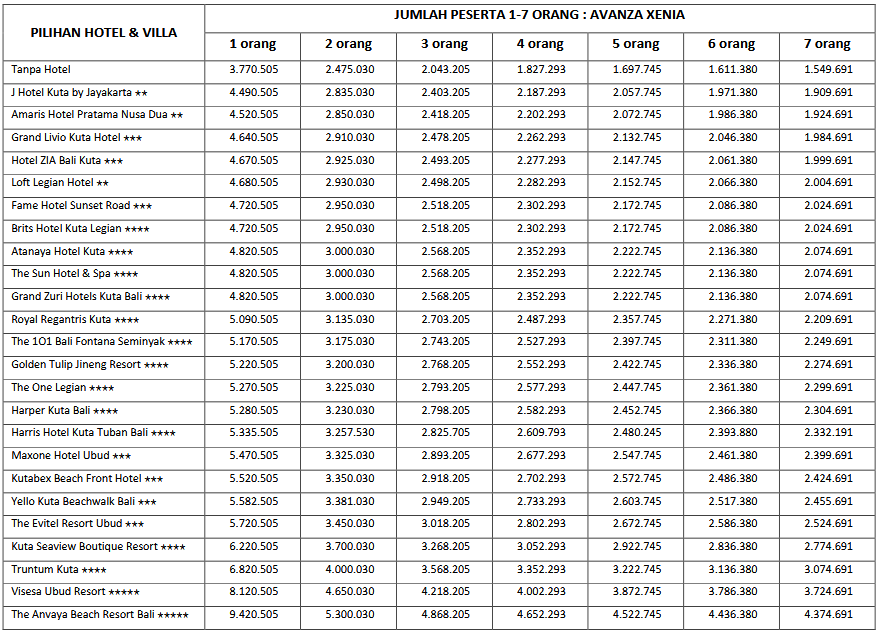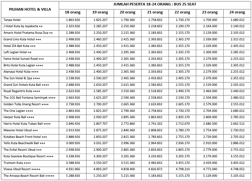 HARGA PEAK SEASON PER ORANG DEWASA