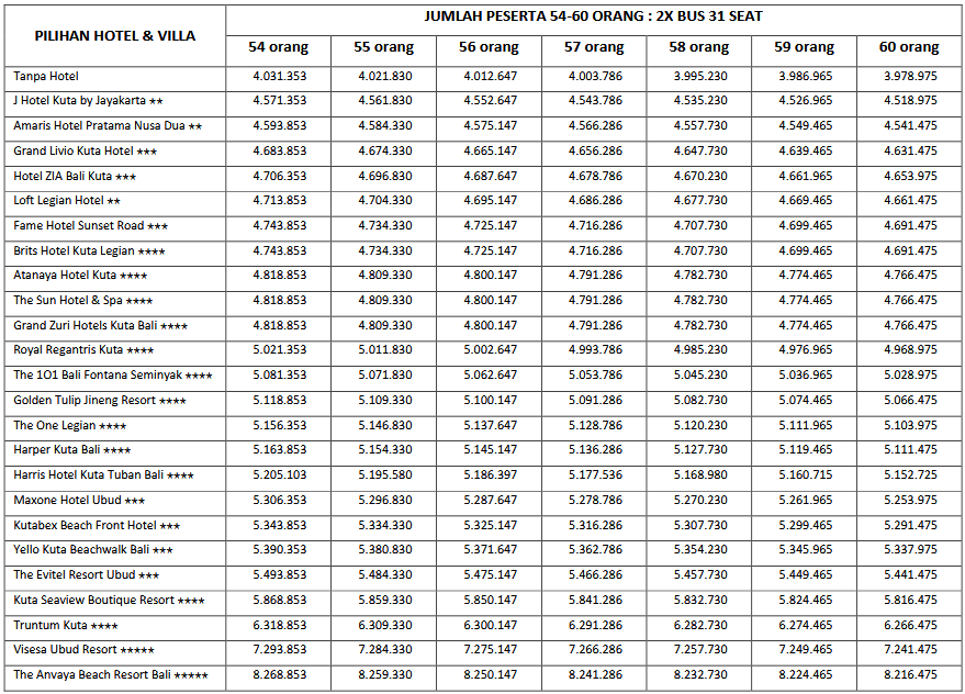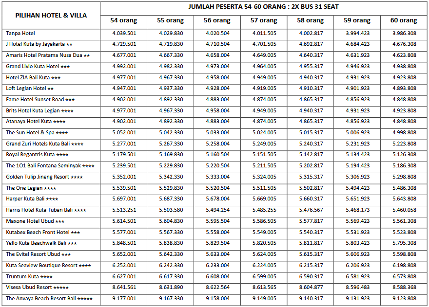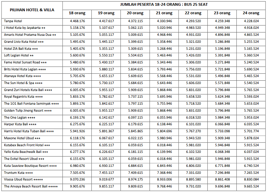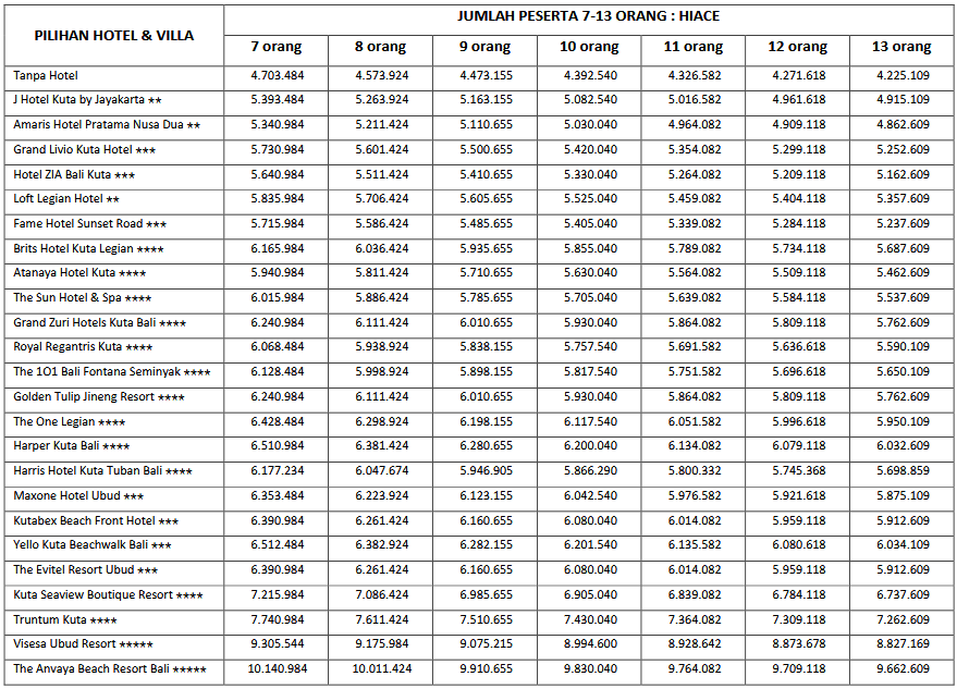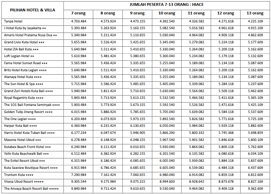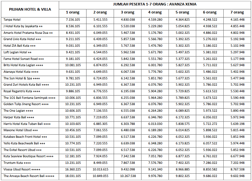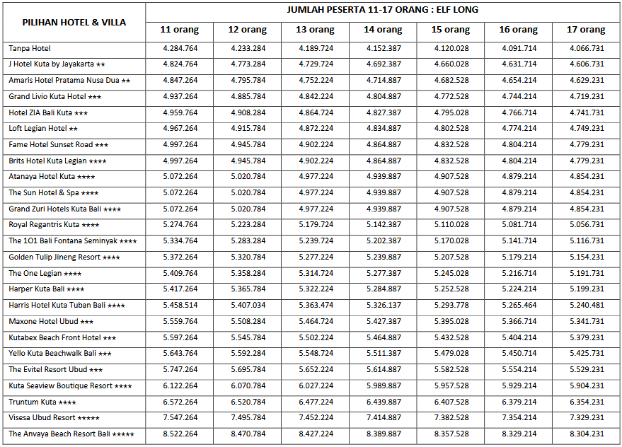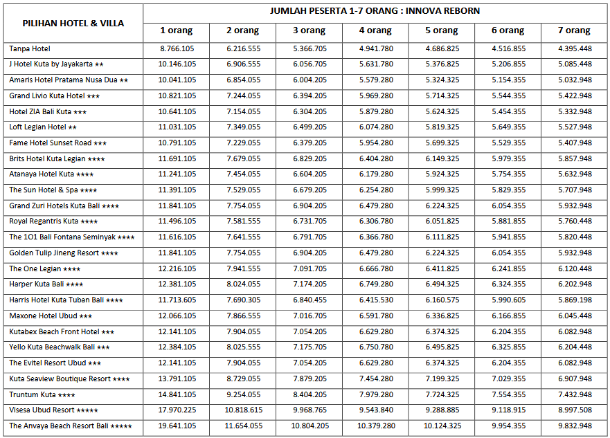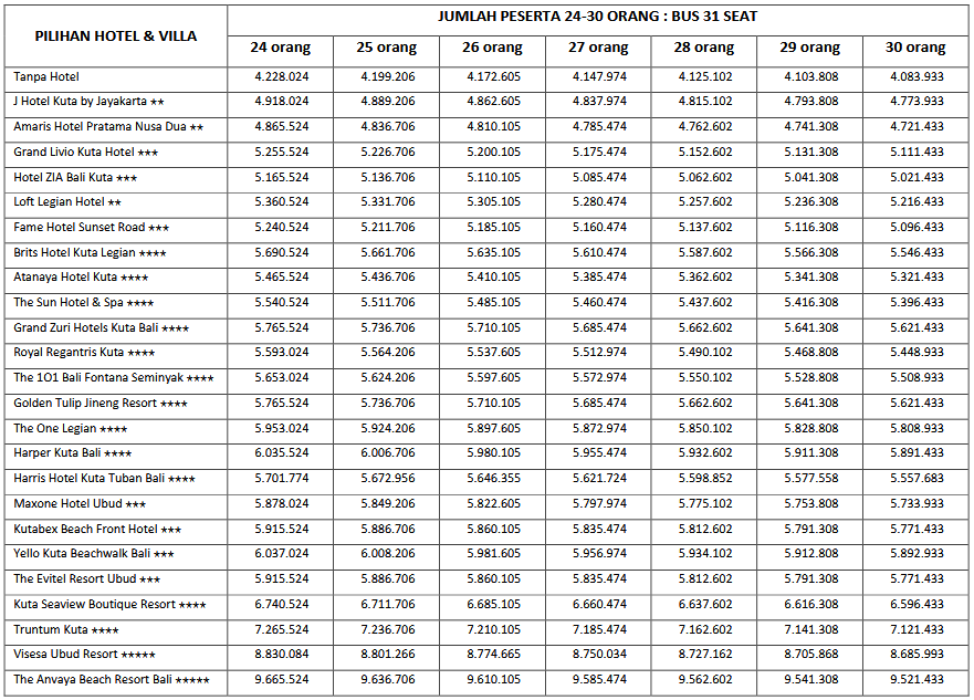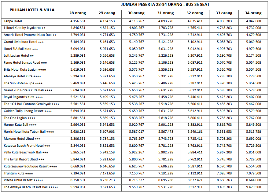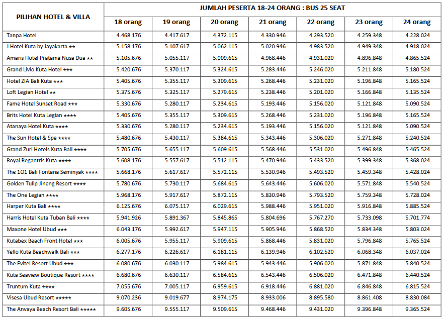 HARGA PEAK SEASON PER ORANG DEWASA