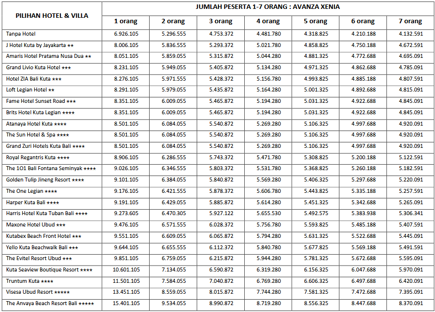 - Tip Supir Merangkap Guide (min. Rp75.000 / hari)
