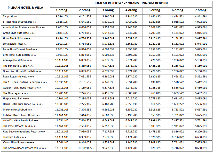 HARGA NORMAL SEASON PER ORANG DEWASA