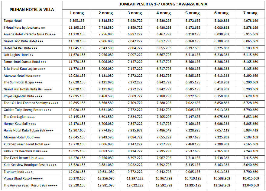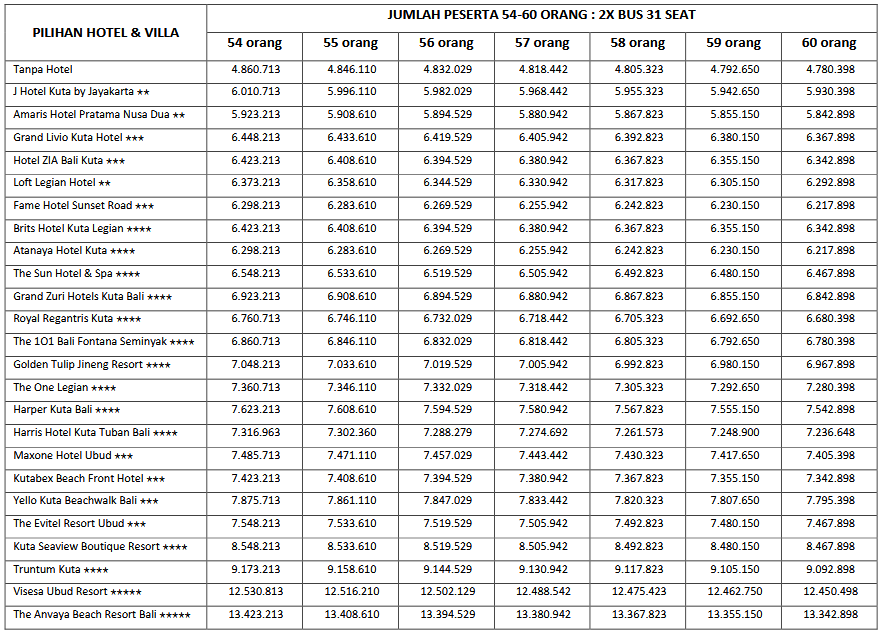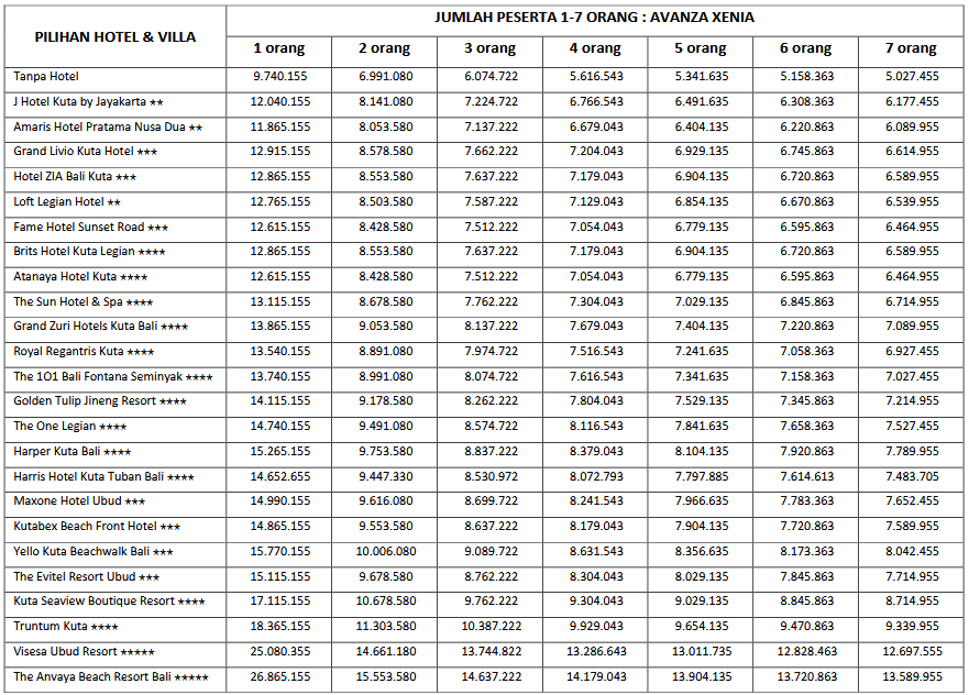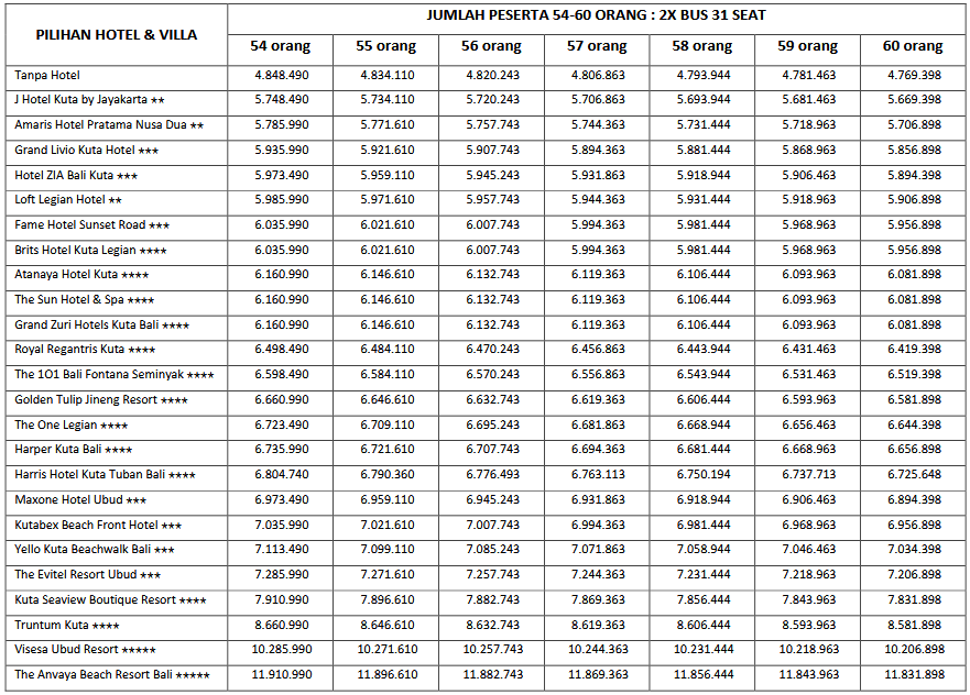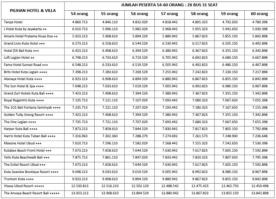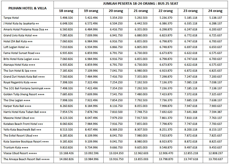 HARGA PEAK SEASON PER ORANG DEWASA