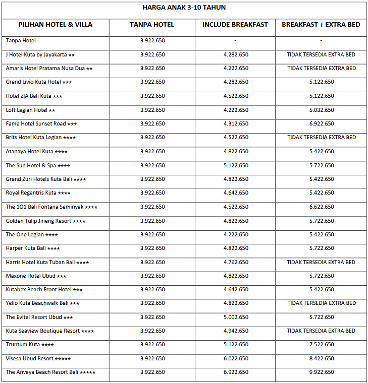 HARGA PER ANAK 3-10 TAHUN
