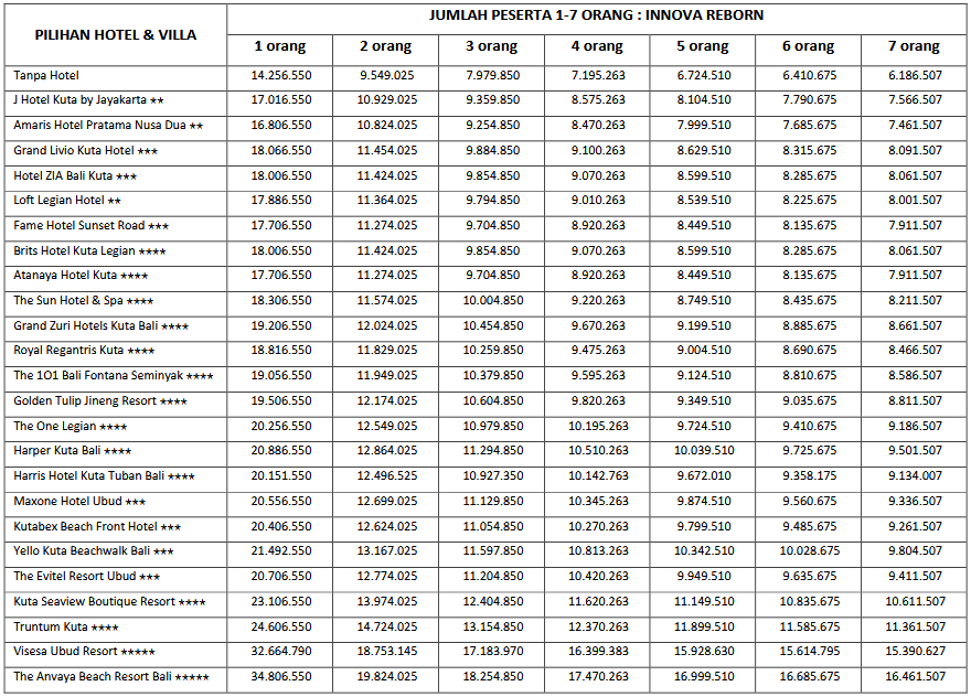 Paket 7H6M A ini cocok di ambil bagi anda, pasangan dan juga keluarga yang ingin mengunjungi Bali karena paket tour ini mencangkupi objek-objek wisata populer yang ada di Bali. Untuk menyesuaikan waktu liburan anda, kami sarankan untuk memesan tiket pesawat dengan jam kedatangan pagi sebelum jam 10.00 WITA dan jam kepulangan sore di atas jam 15.00 WITA.