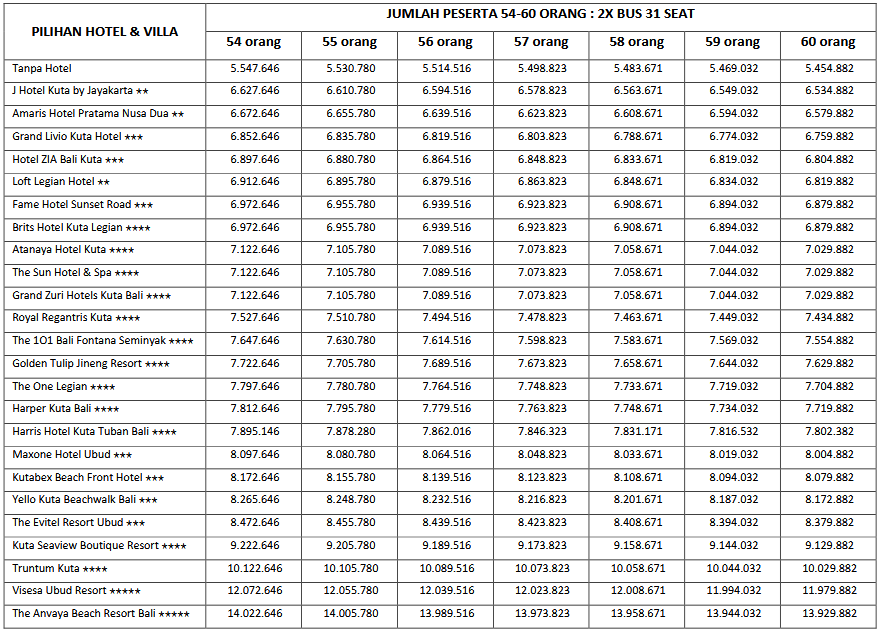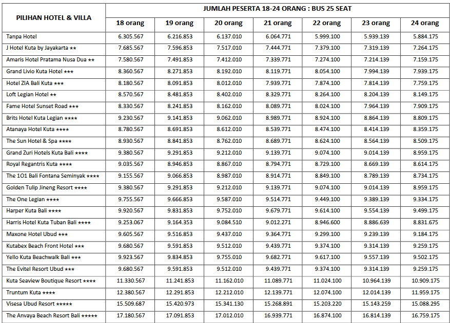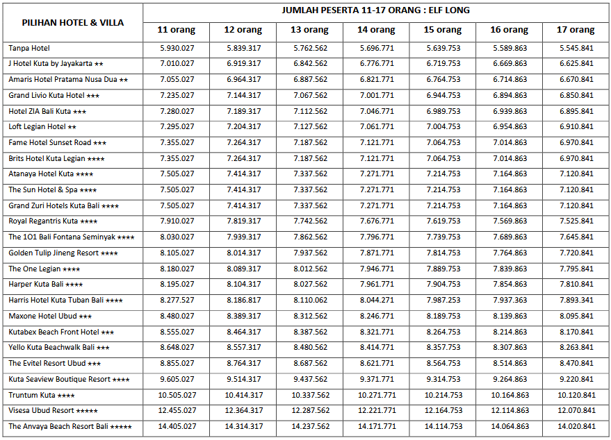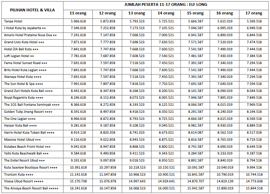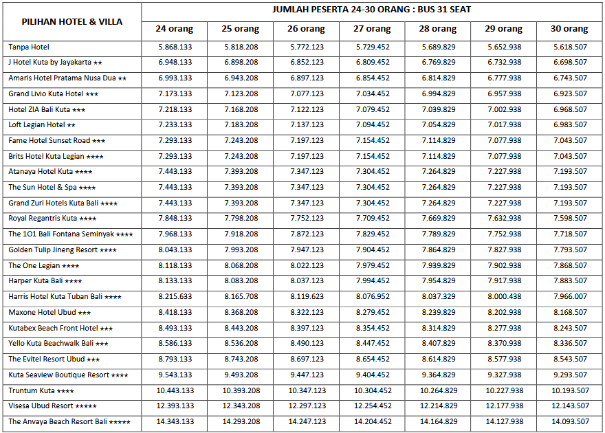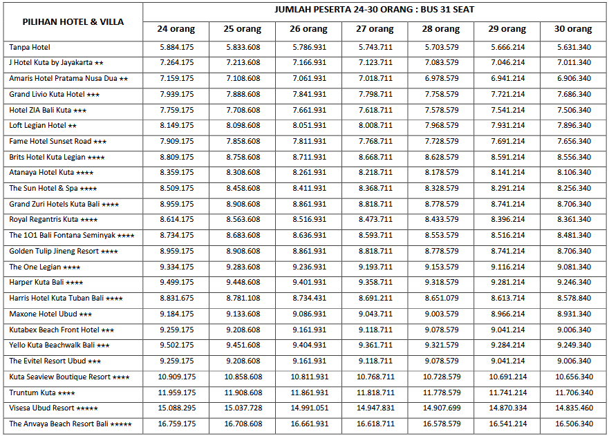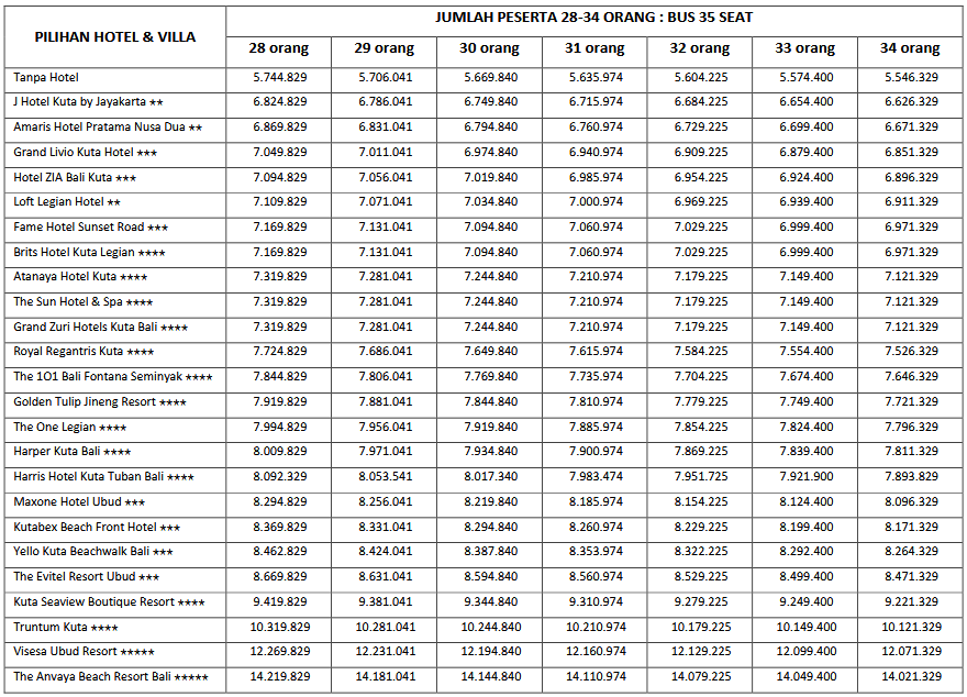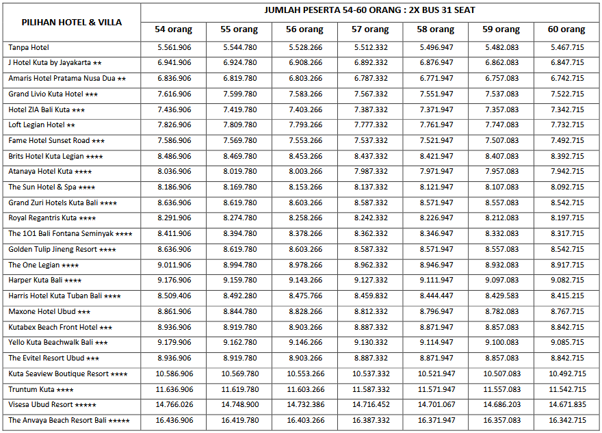 HARGA PEAK SEASON PER ORANG DEWASA