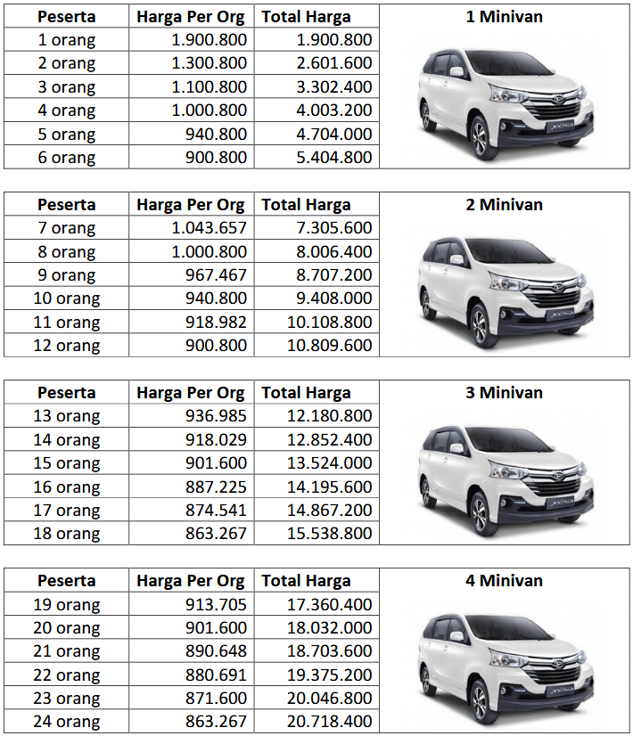 - Tip Supir Merangkap Guide (min. Rp75.000 / hari)